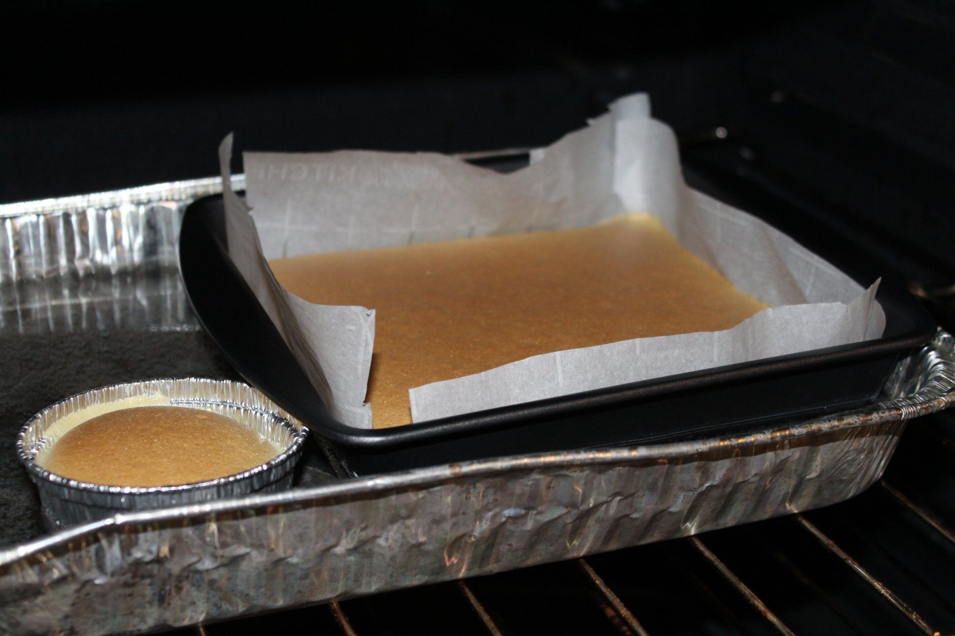 ... ya casi esta. Ponemos la masas en una fuente cubierta con papel de horno, y debemos tener el horno pre-calentado a 150 grados.