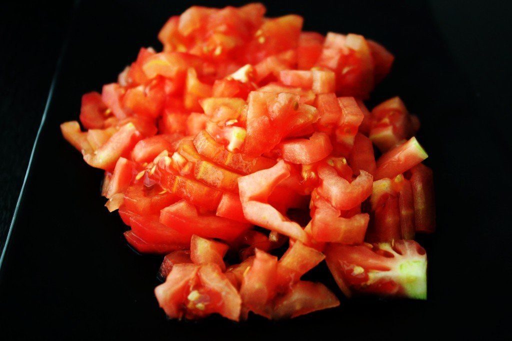Troceamos el tomate en dados pequeños.