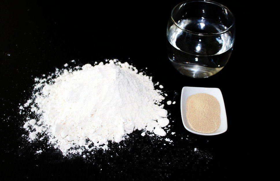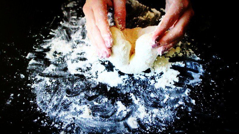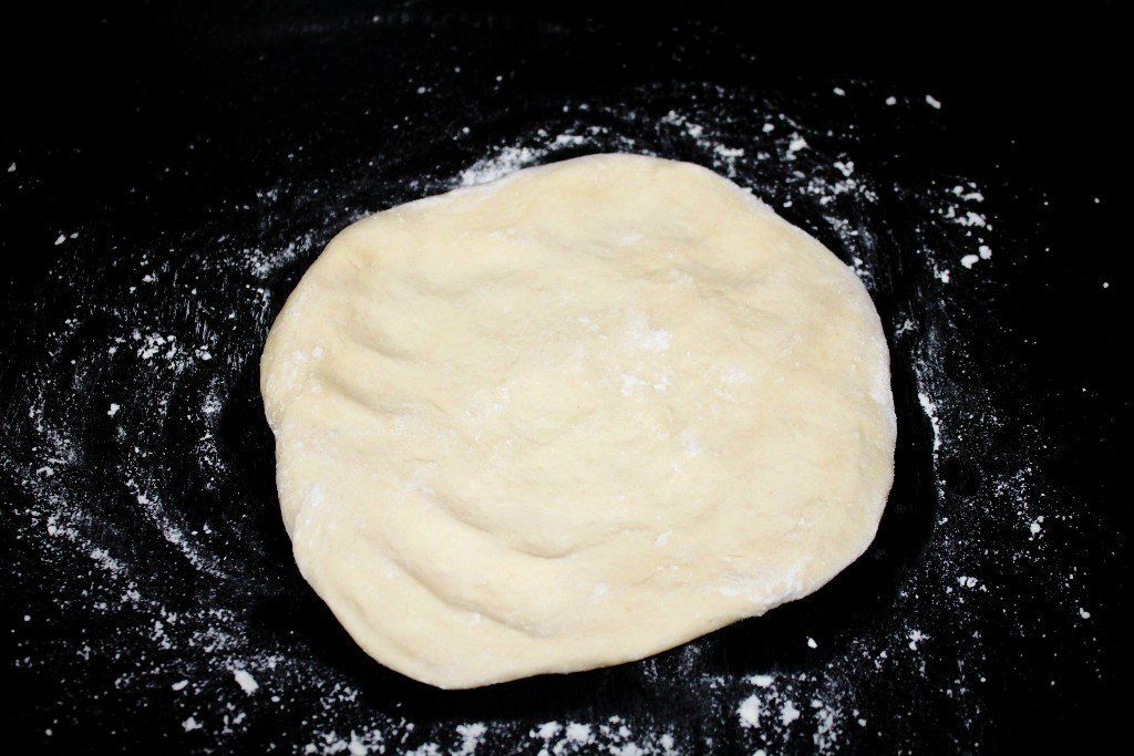 Lo primero la masa. Que debe reposar un tiempo para fermentar. Harina, sal, levadura y agua.