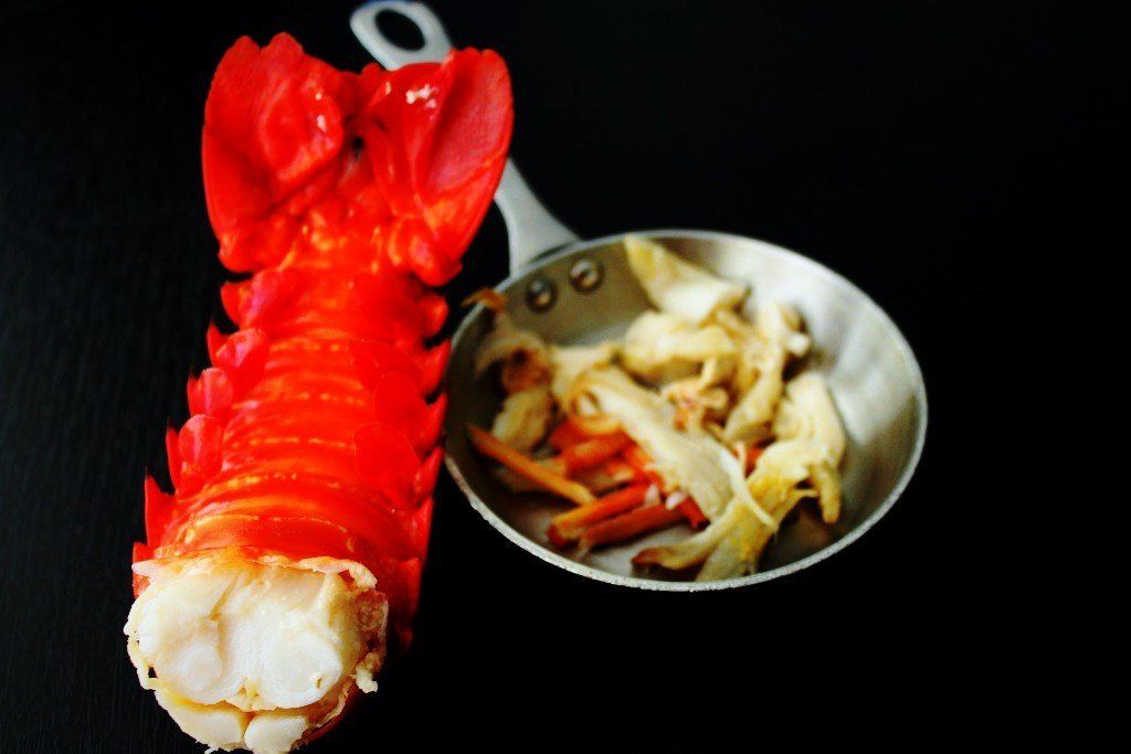 Y ya solo queda poner la cola de langosta troceada por encima.