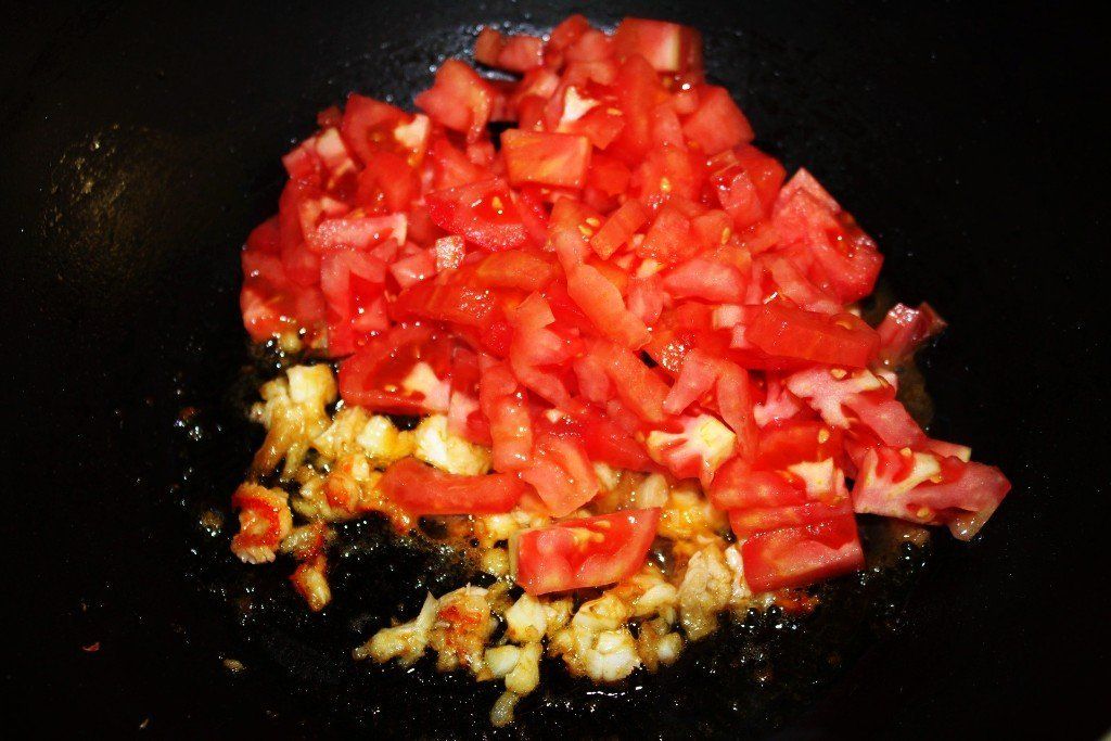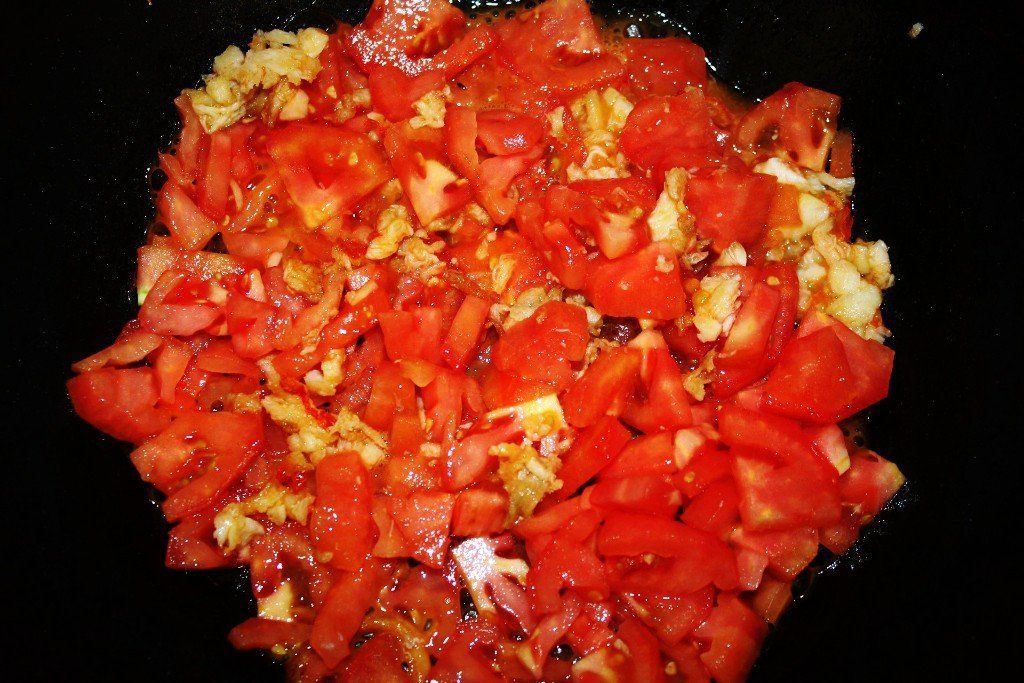... e incorporamos el tomate cortado.