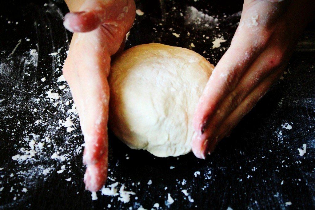 5 minutos de amasado y hacemos una bola. La ponemos en un cuenco hondo y tapamos con film. Dejamos fermentar a una temperatura templada, no fría. Unos 20-30 minutos.