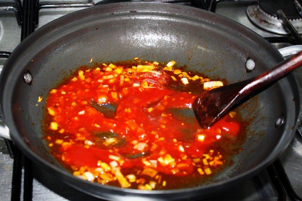 Cocinamos bien la salsa por unos minutos, incorporando también un poco de agua si vemos que se seca mucho.