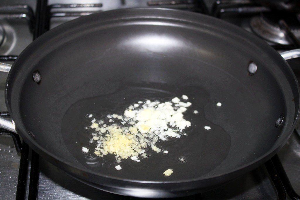 Unos segundos después, sin que se llegue a tostar el ajo, incorporamos la cebolla y rehogamos bien.